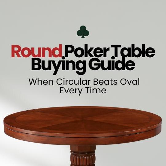 Round 8-person tables (typically 60 inches) create social equality where everyone sits equidistant from everyone else. Great for casual games where poker is the activity but socializing is the primary goal.