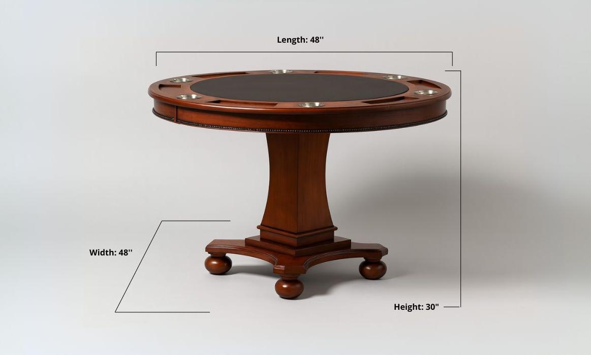 Crafted from high-quality ash and finished in a rich distressed brown cherry, it brings durability and timeless elegance to your home. Built-in cup holders, a smooth playing surface, and sturdy bun feet ensure every game night is organized, stable, and unforgettable.