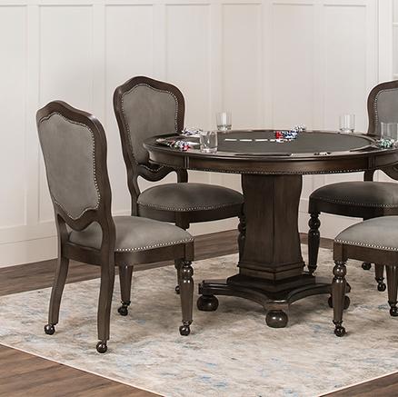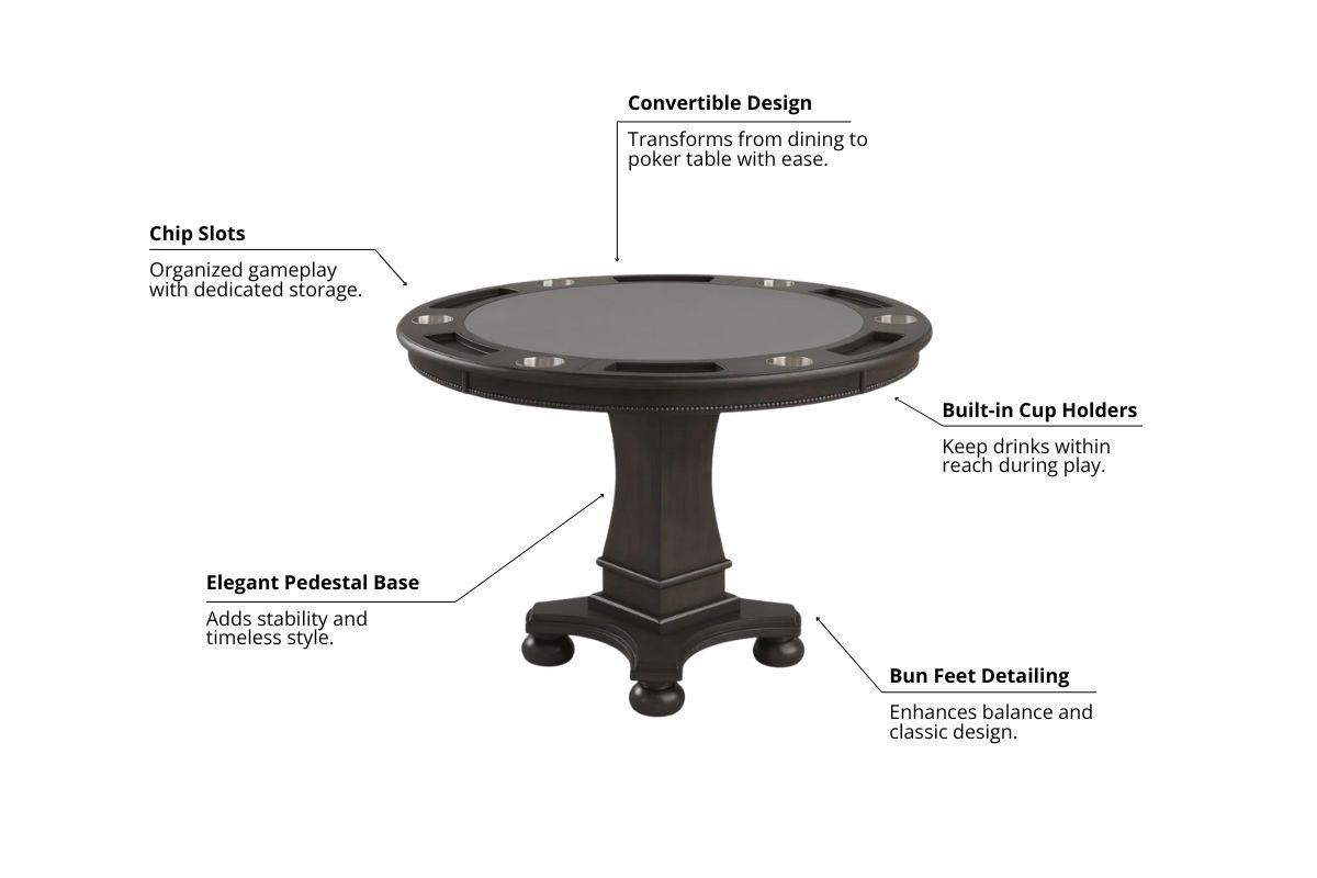 Transforms seamlessly from a stylish dining table to a functional poker table.