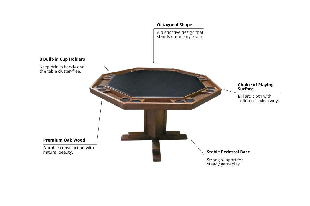 Poker Dining Table Oakerton, Octagonal, 57", 8-person, Oak - Pecan