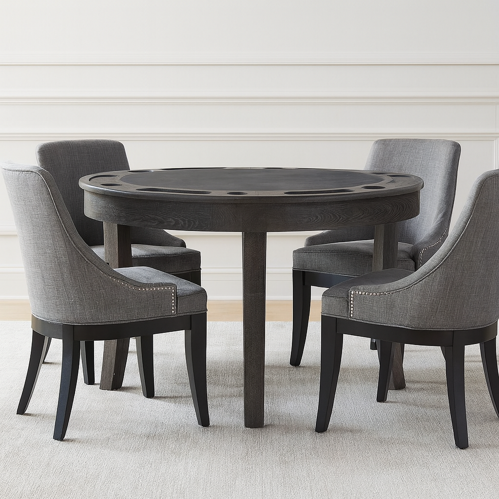 The Tyler Poker Dining Table shines for its seamless blend of functionality, durability, and style. Its convertible design allows you to switch effortlessly between dining and poker nights, making it ideal for versatile living spaces.