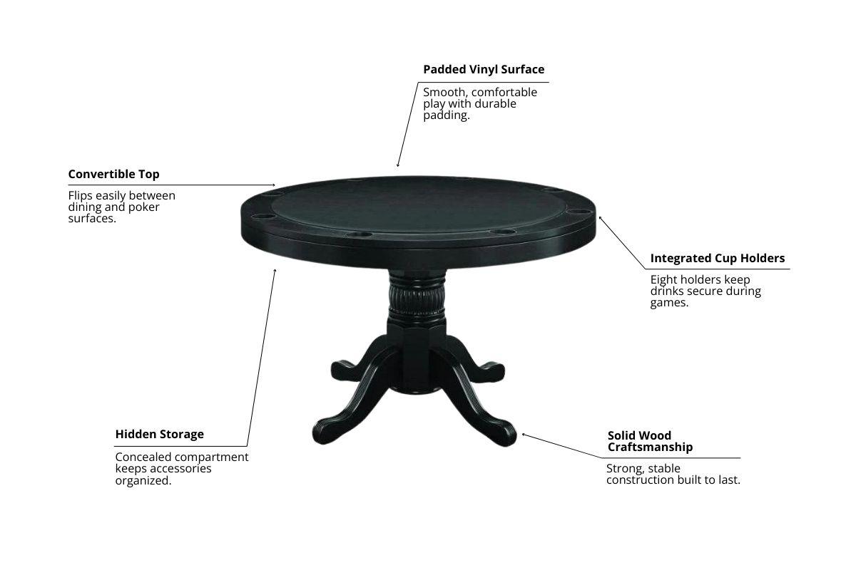 Poker Dining Table Valetta, Round, 8-person, 48" - Black