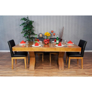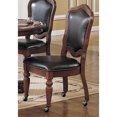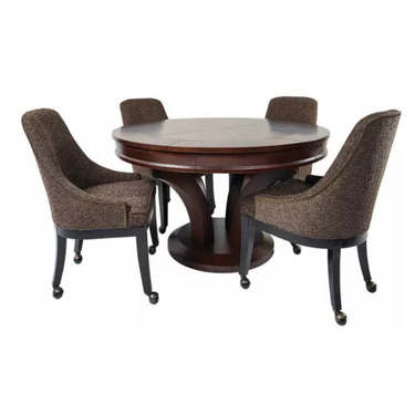 The Oxford 6-Piece Dining Set blends classic warmth with modern versatility. Featuring a removable, foldable game top, this multifunctional set easily transforms from an elegant dining centerpiece to a fully equipped game table. With solid craftsmanship, a rich burnished chestnut finish, and vegan leather-upholstered chairs, it’s a stylish and practical solution for entertaining or everyday living.