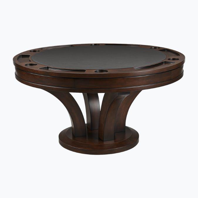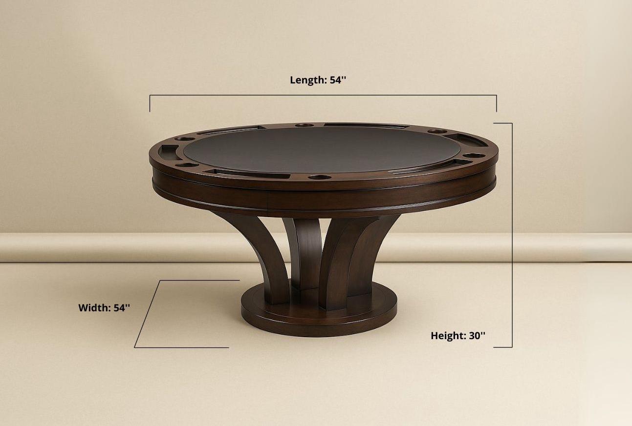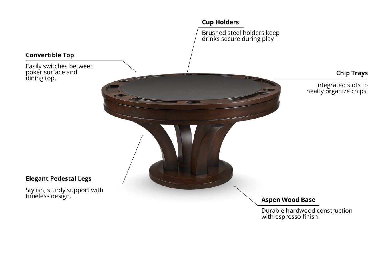 Seamlessly transforms from a professional poker setup to a sleek espresso dining table.